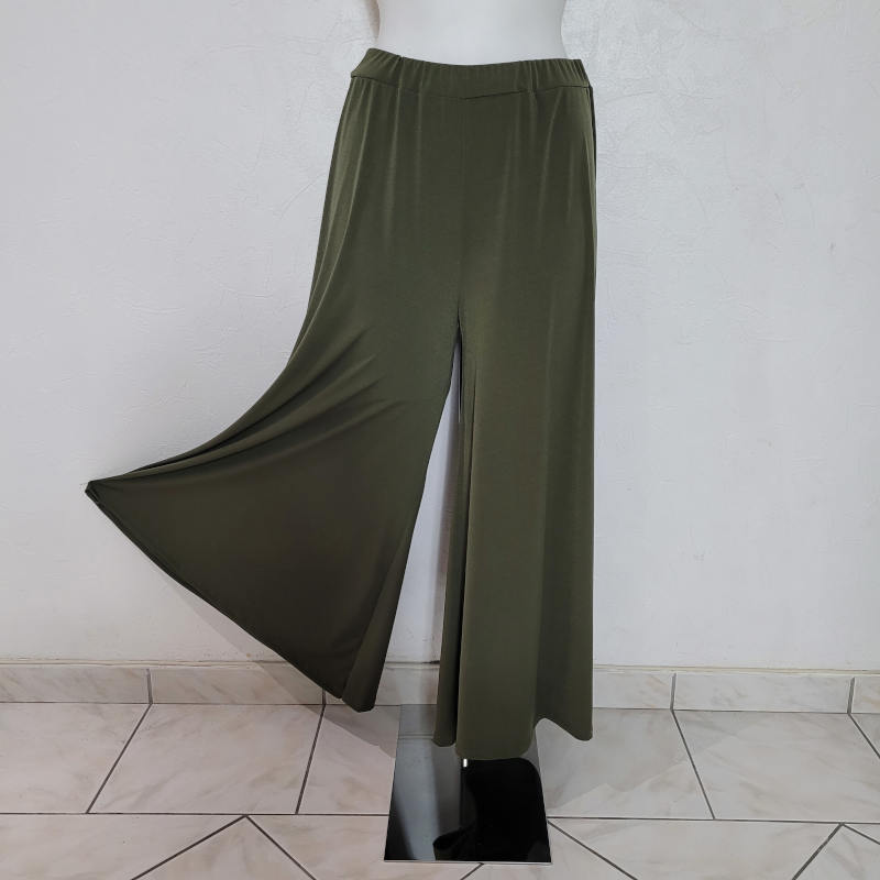Pantalon jupe culotte femme kaki fluide stretch Viscose polyester élasthanne