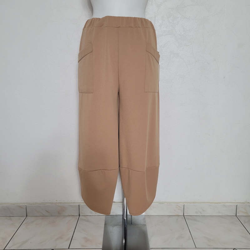 pantalon 7/8 femme grande taille beige avec coupe large original taille haute élastiquée