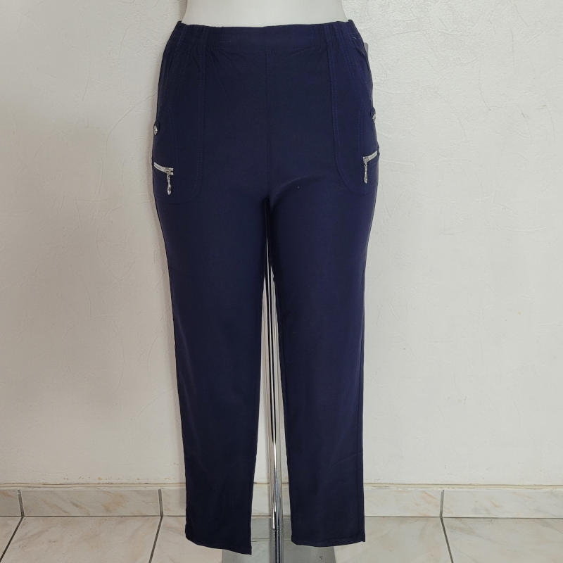 Pantalon pour femme grande taille, bleu marine, coupe taille haute avec une taille élastiquée pour un confort optimal. Ce pantalon est idéal pour celles qui recherchent à la fois élégance et aisance. En effet Sa coupe flatteuse mettra en valeur votre silhouette, tandis que l’élastique à la taille garantit un ajustement parfait. En outre pantalon femme taille haute elastique bleu marine, classique et intemporelle, se marie facilement avec de nombreuses tenues. Que ce soit pour un look décontracté ou plus habillé, il reste versatile.